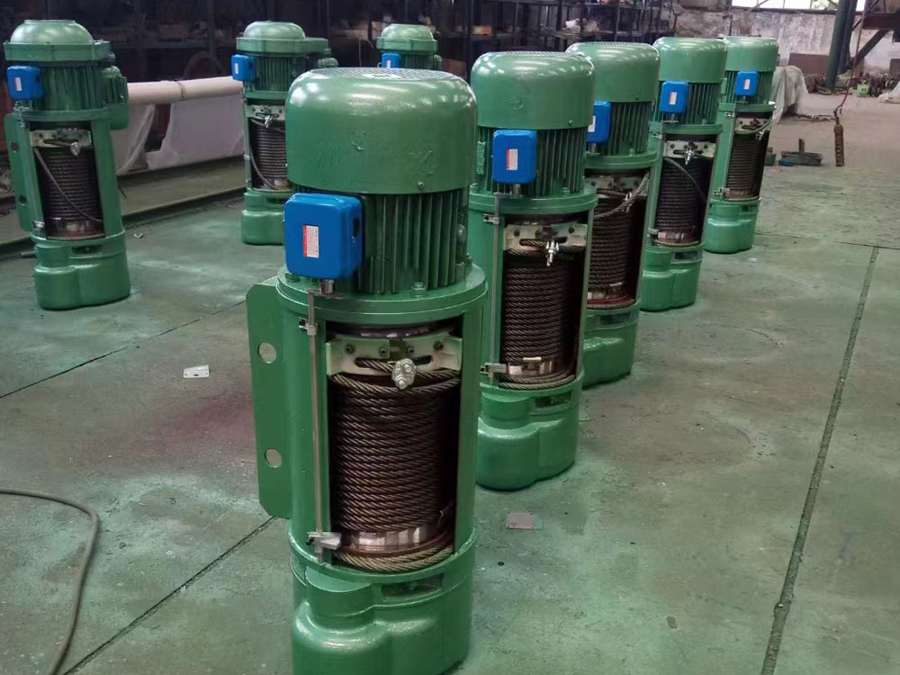 起升電機、卷筒裝置和減速器呈串聯(lián)型布置,外觀呈圓形或方形,具有垂直升降和運行功能,起升速度分單速或雙速。雙速型是在單速型的基礎(chǔ)上,增加了一套由慢速電機和減速器組成的慢速驅(qū)動裝置,其與快速之速比為10:1。快速電機工作時,慢速驅(qū)動裝置不動,電動葫蘆快速升降。慢速電機工作時,通過慢速驅(qū)動裝置帶動主起升電機錐形轉(zhuǎn)子旋轉(zhuǎn),電動葫蘆慢速升降。